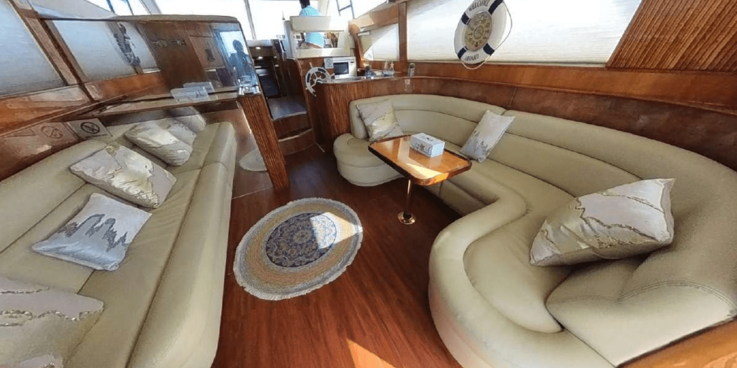 Step aboard the Gulf Craft 60ft – a beautifully refitted 2023 model that combines luxury, space, and smooth cruising from Dubai Harbour.