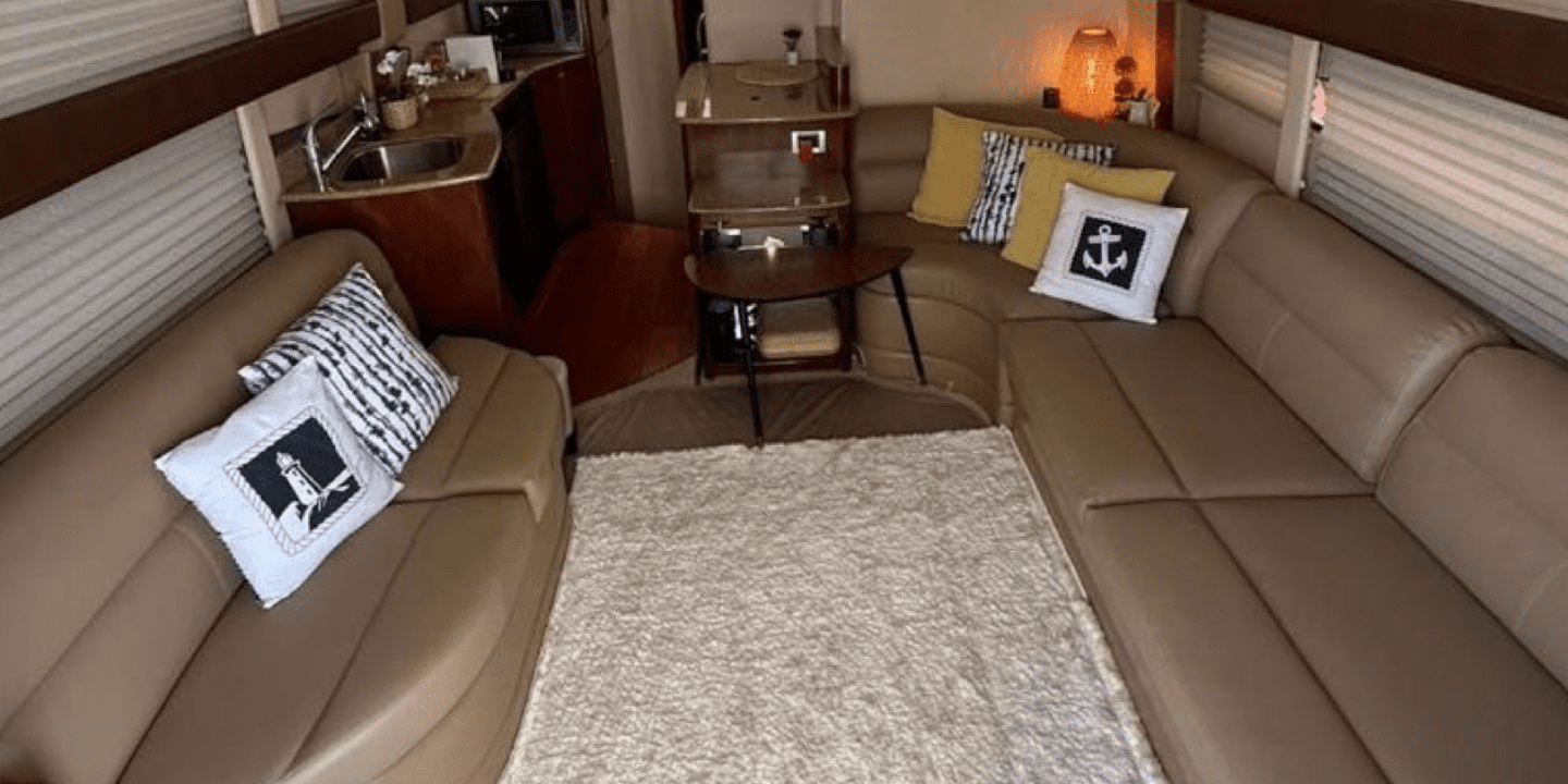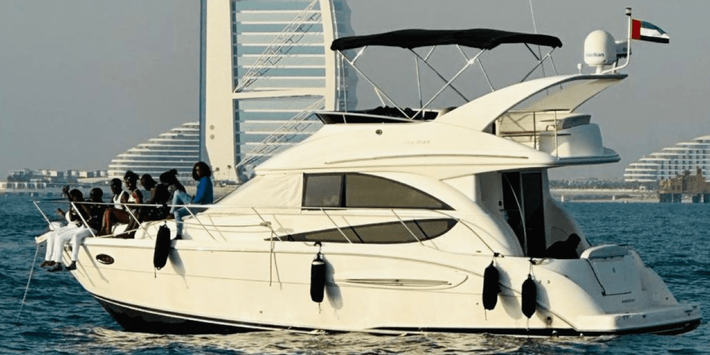 Cruise along Dubai’s iconic coastline, anchor near JBR or Palm Jumeirah, and make unforgettable memories aboard this compact yet elegant yacht.