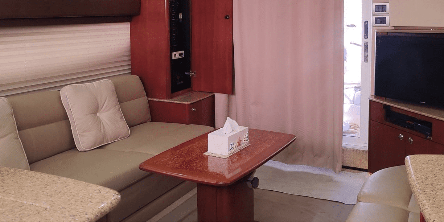 Step aboard Meridian – a 45ft yacht that combines comfort, style, and versatility, freshly refitted in 2024 and sailing from Dubai Harbour.