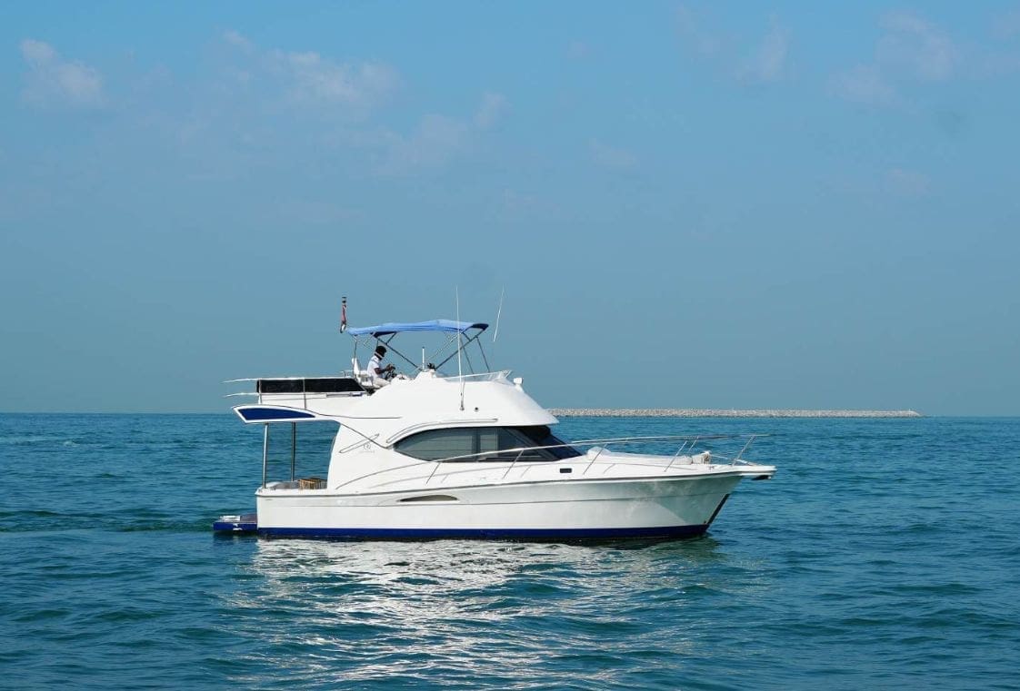 With captain, crew, and fuel included, your experience is completely taken care of from the moment you step aboard. Cruise past JBR, anchor near Palm Jumeirah, and enjoy a yachting experience that’s both effortless and elegant.