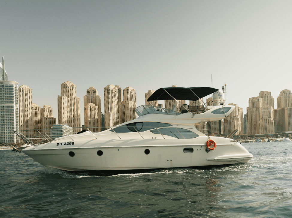 Cruise along Dubai’s iconic coastline, anchor near JBR or Palm Jumeirah, and make unforgettable memories aboard this compact yet elegant yacht.